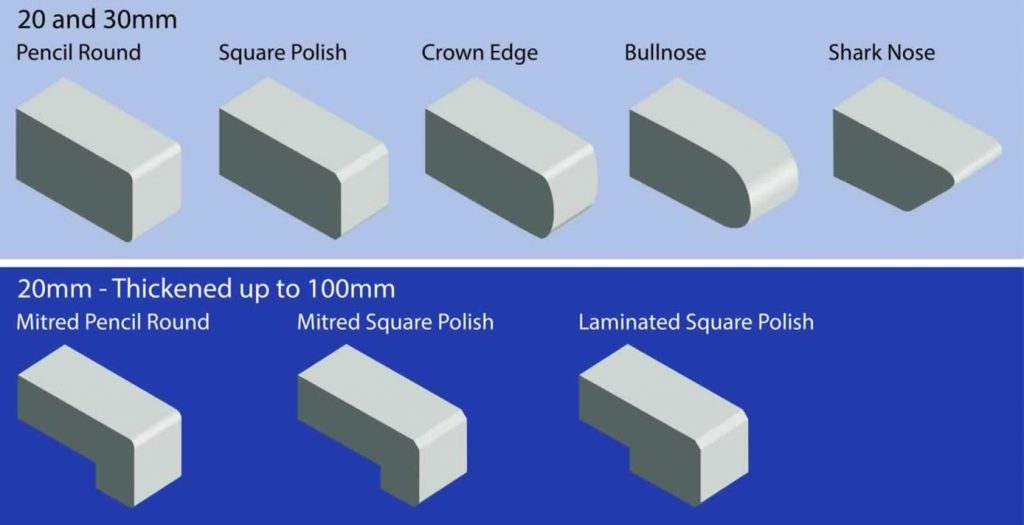 All visible edges for our bench tops can be finished in any of the following ways.